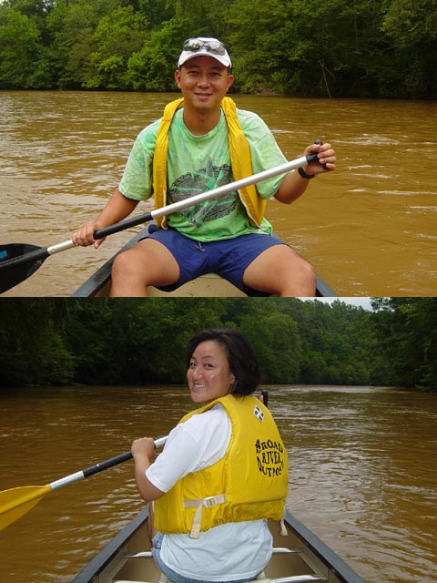 자칫 균형을 잃으면 배가 뒤집어지기 때문에 노를 젓다말고 사진을 찍고 찍히는 것이 쉬운 일이 아니더군요. 보시는대로 김박사가 뒤에 앉아서 방향을 조절하고, 보영은 앞에서 팔뚝 근육을 좀 키웠더랬습니다.