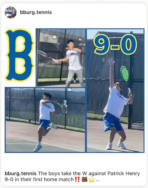 홈 경기에서 패트릭 헨리 고등학교 팀을 9대0으로 이겼다는 내용이다.
