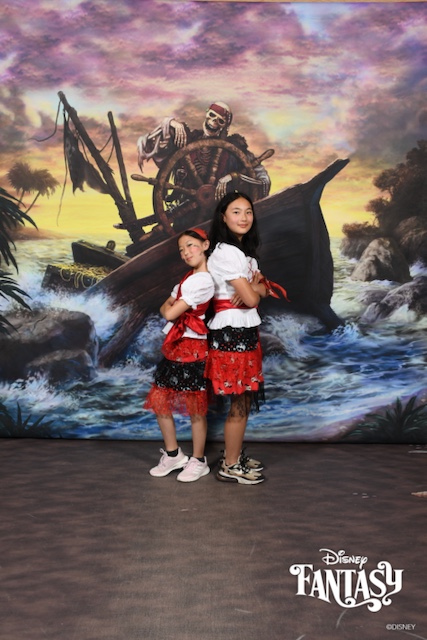 거대한 배의 갑판은 수영장에 덮개를 덮어서 만든 초거대 나이트클럽 같은 분위기이다. 망망대해 바다 위에 떠있는 중이니 음악을 아무리 크게 틀어도 뭐라할 사람이 없고 불꽃을 펑펑 터뜨려도 신나기만 하다. 그렇지만 너무 어린 아이들은 졸려서 해적 파티 시간까지 버틸 수 없을 수 있고, 너무 많은 사람들이 시끌벅적 모여있는 것을 피곤하게 여길 사람도 있을 것이다. 그런 사람들을 제외하고는 신나는 파티를 즐기는데, 이를 위해 주제에 맞추어 차려 입은 사람들이 아주 많다. 디즈니 크루즈에서도 이런 분위기를 장려해서 모든 승객들에게 해적 파티를 위한 스카프를 제공한다.
