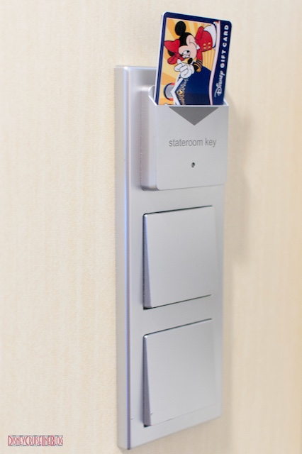 호텔 객실에도 이런 장치를 많이 설치하는데, 출입문을 들어서면 바로 손이 닿는 곳에 객실 전체 전원을 켤 수 있는 스위치가 있고, 그 스위치는 카드키를 꽂아야 켤 수 있다. 반대로 객실을 떠날 때는 카드를 빼면 모든 전원이 꺼져서 전기 사용을 줄일 수 있다. 디즈니 크루즈에서 사용하는 키 투 더 월드 카드를 여기에 꽂아서 사용하는 것이 원래의 의도이지만, 키 투 더 월드 카드는 사진을 찍을 때 신분 확인, 기념품을 구입할 때 지불 용도, 배 밖으로 나갈 때 신분증, 등으로 중요하고 빈번하게 사용되고 또 일일이 카드 홀더에서 꺼내고 넣기가 귀찮다.